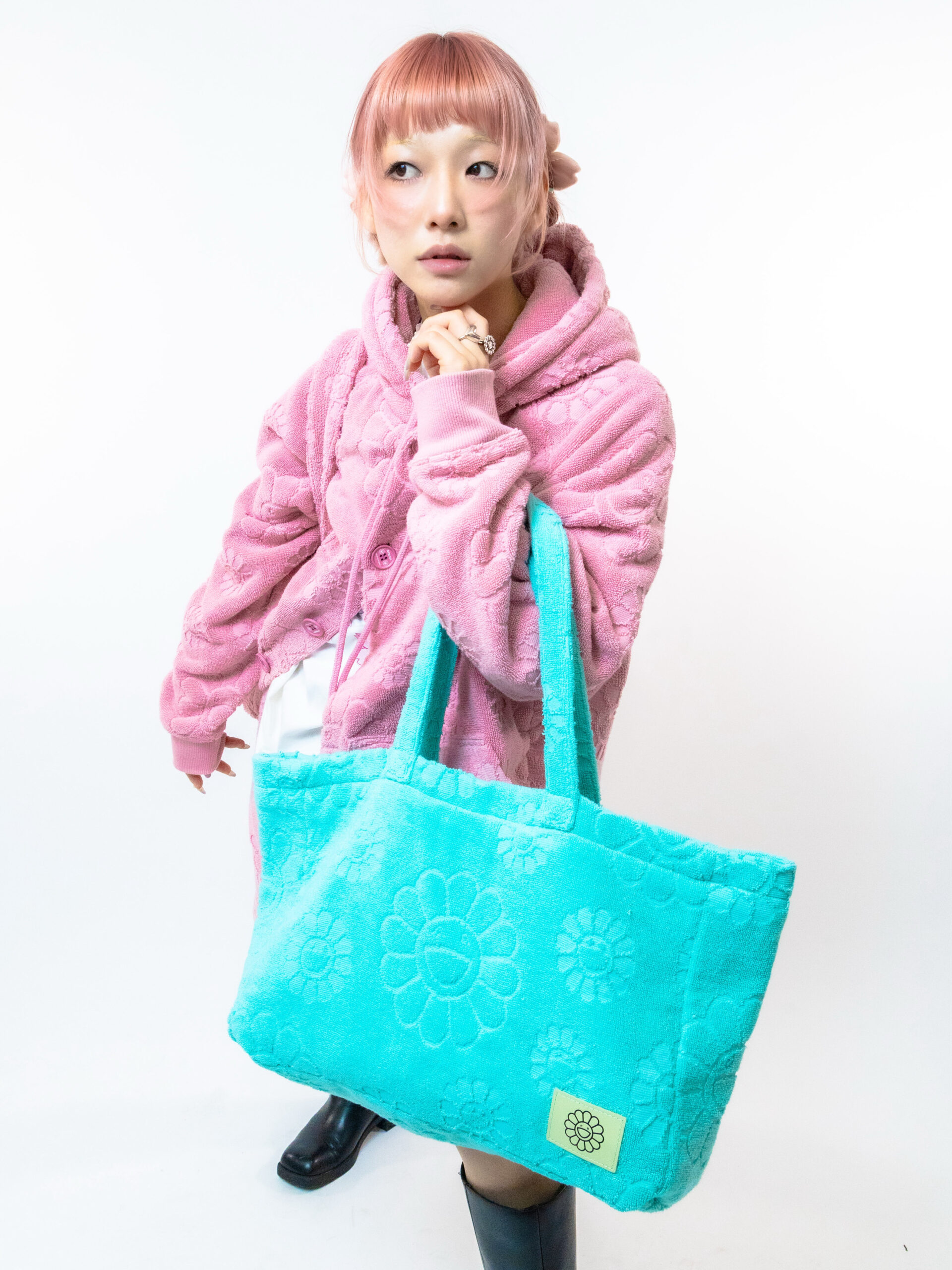 ・Flower Jacquard Pile Tote Bag Pink
